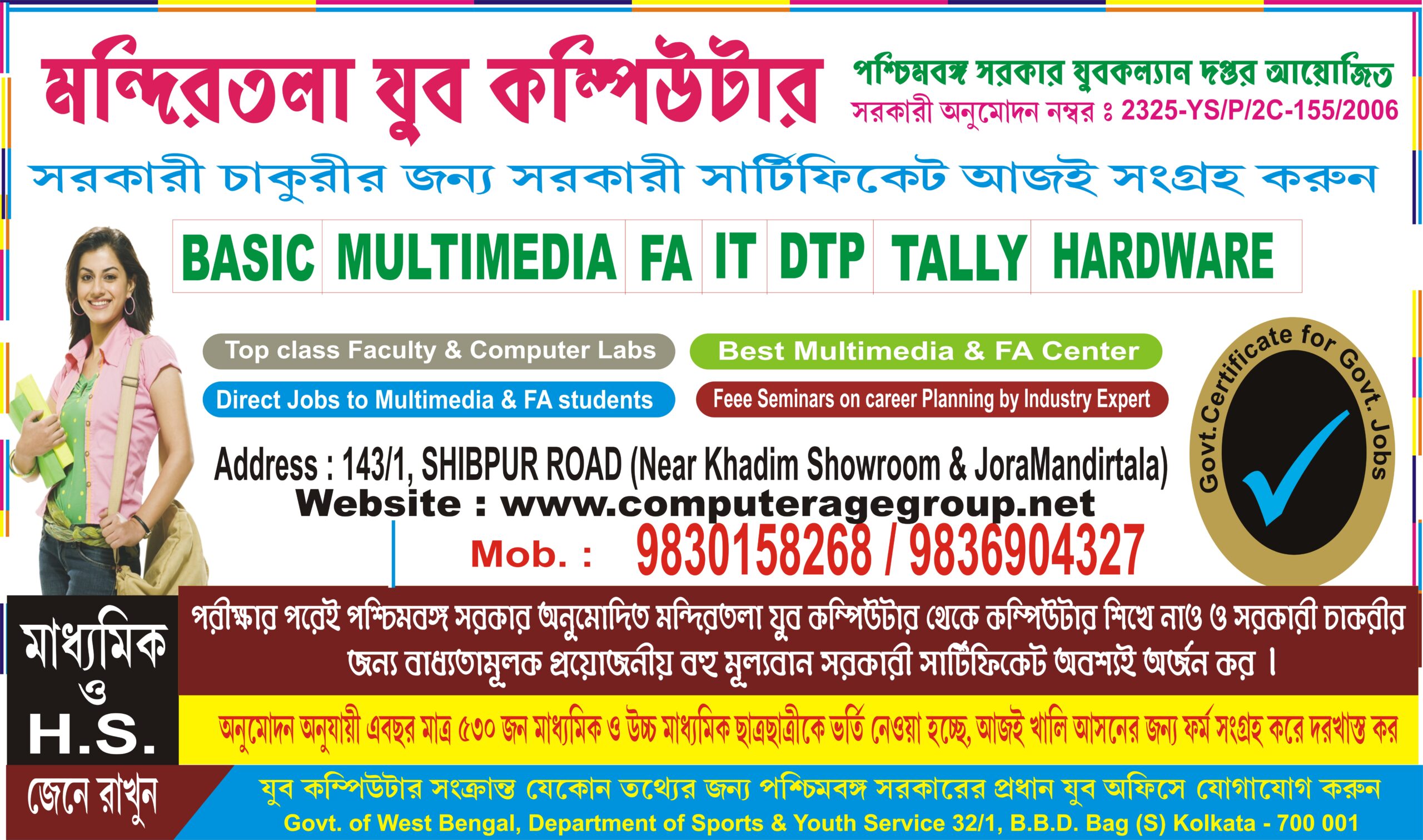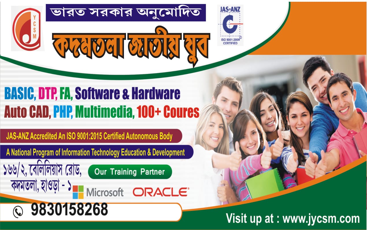 Computer কিন্তু সমস্ত পৃথিবীতে এক নম্বর Career Choice. BCA, B.Tech, MCA, M.Tech না করেও বা সাধারণভাবে গ্রাজুয়েশন হয়ে বা করতে তিন বা চার বছর নষ্ট না করে কিভাবে যুক্তিপূর্ণ টাকা খরচ করে সফল কম্পিউটার প্রফেশনাল হওয়া যায় সবই জেনে নিতে পারো অভিজ্ঞ কম্পিউটার প্রফেশনাল দের থেকে। এই উদ্দেশ্যে আমাদের যুব কম্পিউটার সেন্টার এর সমস্ত ছাত্র-ছাত্রীরা বিনা খরচে এরকম দুটো সেমিনারে অংশগ্রহণ করার সুযোগ নিতে পারে। একটি শুধু ছাত্র-ছাত্রীদের নিয়ে অন্যটি অভিভাবকদের সাথে নিয়ে।